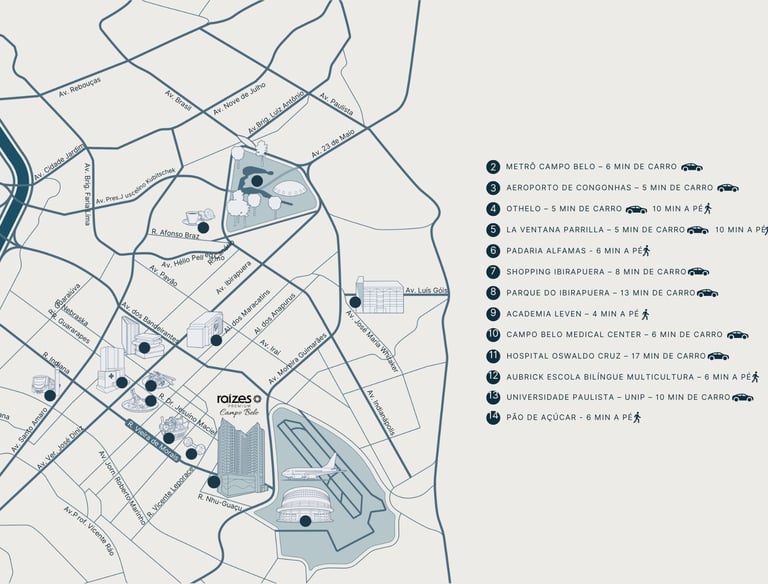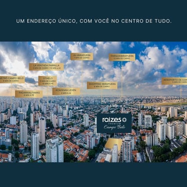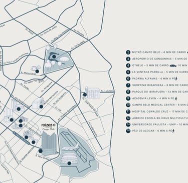🏡 O Campo Belo é uma das regiões mais valorizadas de São Paulo, reconhecida por sua infraestrutura completa, proximidade ao Aeroporto de Congonhas, acesso às principais avenidas (Bandeirantes, Roberto Marinho, Santo Amaro) e ampla oferta de comércio, serviços e gastronomia de alto padrão.